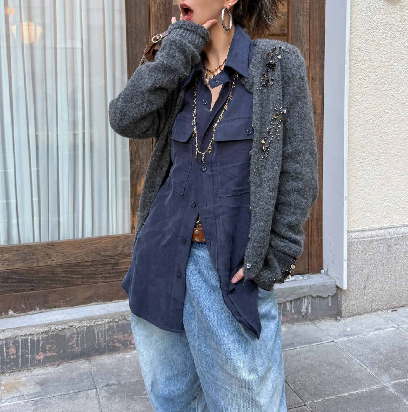 Fashion Style:Autumn/Winter Trendy Pattern Type Beading &Sequins MaterialWool Neckline: Round Neck Fit TypeCardigan Sweater