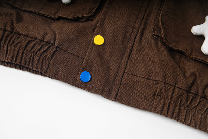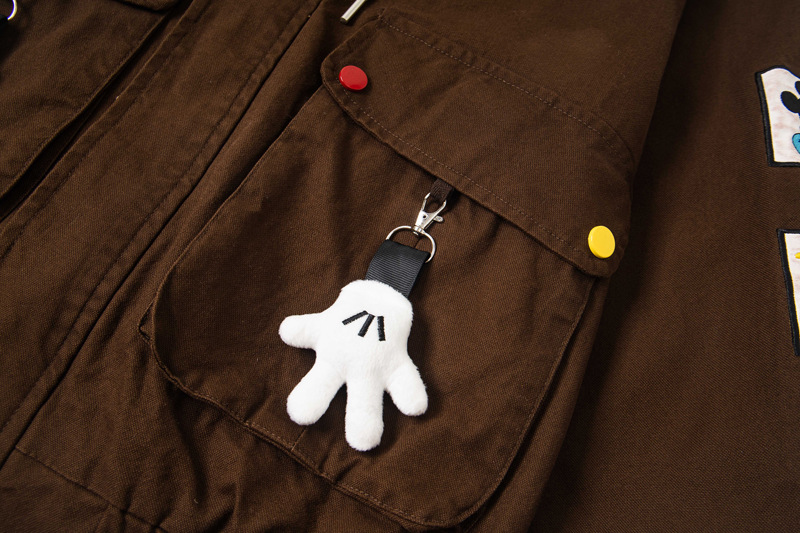 Retro Cartoon Embroidery Multi-pocket Hooded Jacket for Men and Women, Loose College Style Outerwear